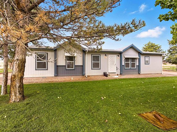 Discover this stunning home under 5 years old, nestled on 2 acres of picturesque land. Enjoy modern comforts with an updated kitchen throughout the home and refrigerated air for those warm days. The property features a spacious covered 3-car carport, a deck for relaxation, and ample storage. Animal lovers will appreciate the horse facilities, hay barn, and ditch irrigation available right at the property. You'll find a generous service room, mature trees including peach and apple trees, and lush grass that complements the beauty of country living. This is your opportunity to embrace tranquility and space!