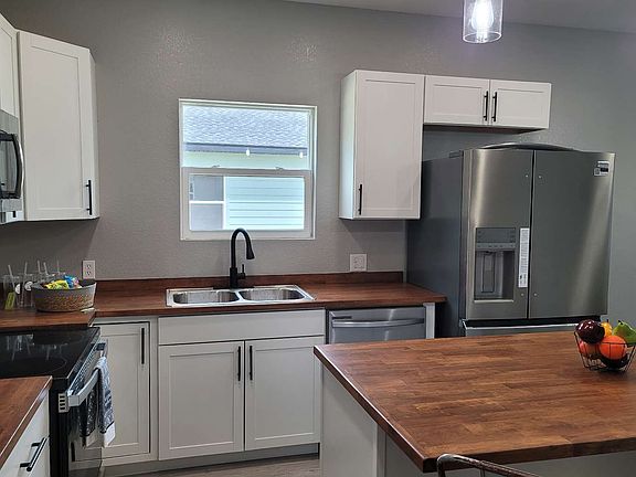 Welcome to your private retreat! This brand-new 2025 build features a 3-bedroom, 2-bath split floor plan and is positioned on the end lot of a dead-end street. With just one newly built neighbor to the side and another directly in front, the property still offers a peaceful setting while being conveniently located within city limits. The interior boasts a beautiful kitchen with butcher block countertops and a full set of appliances—microwave, stove, refrigerator, and dishwasher—ready for your culinary creations. The entire home is finished with vinyl plank waterproof flooring, combining durability with modern style. This location and layout make it the perfect choice for anyone seeking comfort and seclusion without sacrificing convenience.