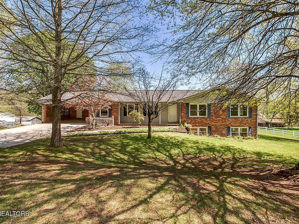 Welcome to your slice of paradise nestled on 11.5 acres . This charming basement rancher farm house offers a perfect blend of comfort, charm, and country living in a great location. 10 minutes from Oak Ridge and Interstate 40. Just 30 minutes to knoxville. Whether you are looking for a peaceful retreat or a functional homestead. This home offers a spacious living area and a fully finished walk out basement and stunning views. 4 bedrooms and 3 baths . basement garage/work shop , a detached garage , and a covered carport. outside you will find a classic 6 stall barn with loft. perfect for horses, live stock and plenty of pasture space to roam. A tranquil pond adds to the beauty and provides a peaceful spot to relax and fish.