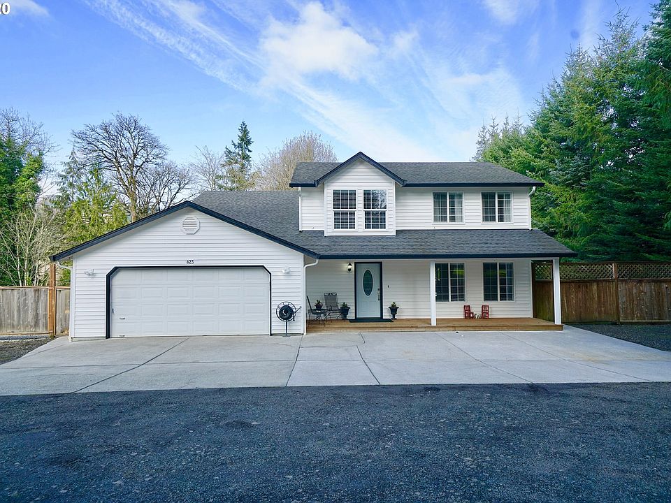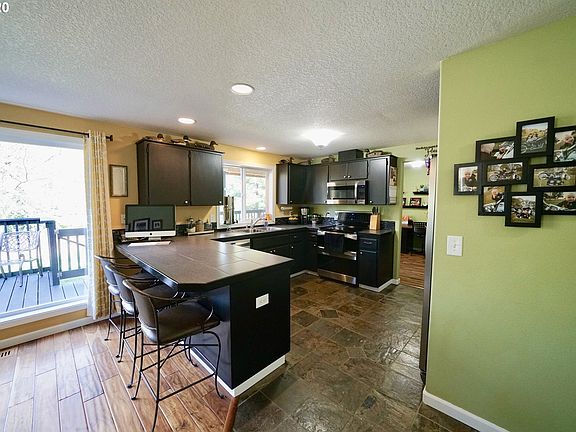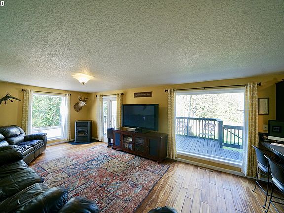 Very functional 4 bed, 2.5 bath country home situated on 1.4 acres in town! Modern style features hardwood/tile flooring, stainless appliances, pantry, garbage disposal, heat pump, furnace, updated bathrms, new fixtures, vinyl windows and a partially covered back deck open to the lrg fully fenced backyard. Home sits back off street. Two car attached garage, walk in closet, fruit trees, garden area, utility rm, pellet stove, plenty of storage, privacy w/ lots of enclosed space & more. Must see!