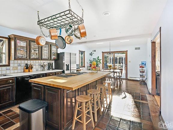 (North Brunswick proeprty, Milltown Mailing Address) Private, custom-built home. Oversized rooms, perfect for enetertaining and large Holiday gatherings! First floor boasts sunken living room with fireplace, Den/Office/Possible 1st floor BR with fireplace, oversized eat-in kitchen with butcher block center island & double wall ovens, family room with sliding glass doors & skylights, powder room & Laundry with access to 2 car garage. Upper level MBR with en-suite, jacuzzi & separate shower. 3 more generous sized bedrooms & main Bath on upper level. Fully finished basement with wet bar, bedroom full bath, 2nd kitchen, recreation/media room, as well as storage room. Multi-zone HVAC systems. Multi-tiered deck, in ground pool and serene yard backing to water views of brook (no flood insurance required). Solid, steel beam construction!