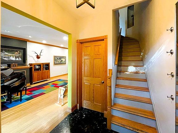 Koi pondUpdated fireplacePrivacy fenceStainless steel smart appliancesLush green yardStunning kitchenDining room