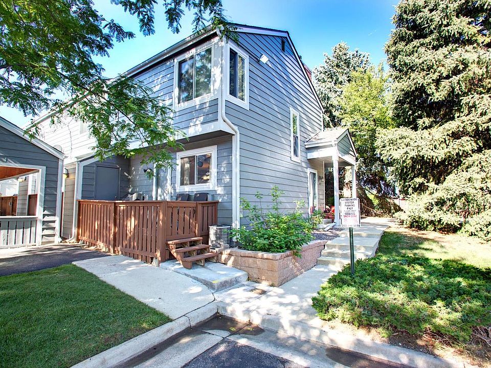 Wonderfully updated end unit condo conveniently located in popular and well maintained Sugarmill, steps from public transportation, near Highlands Ranch Town Center, Northridge Rec Center, parks and trails and all the Highlands Ranch amenities! Great updates include granite counters, cabinets, new laminate wood flooring in kitchen and baths, updated fixtures and more! Half bath on main floor. Upstairs bedrooms feature vaulted ceilings and their own private bath. Balcony off kitchen plus front patio seating area. Parking is right in front of unit and includes 1 Carport Space and 1 Reserved Space. New roof in 2017, new exterior paint in 2016, new furnace in 2014. Photos will be uploaded by Thursday, showings start on Friday!
