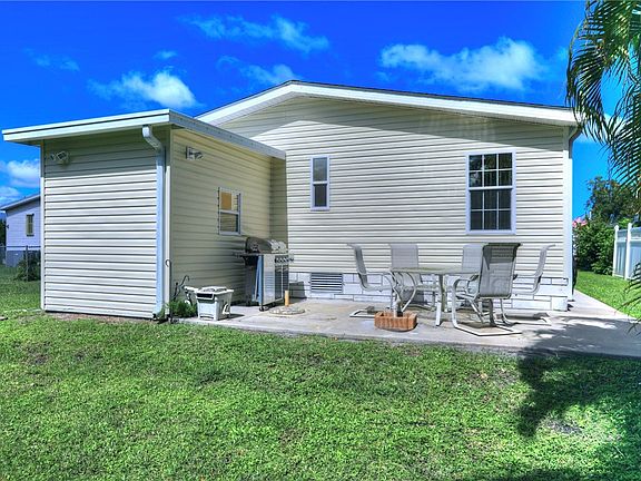 Live the Barefoot Bay lifestyle in this beautifully landscaped 3BR/2BA, 1687 sqft home! Built in 2003, this home offers split bedrooms, an in-unit laundry with cabinets for extra storage, a sunny Florida room, a large eat-in kitchen, outdoor patio, and a 2 car garage. Updates include a 2021 roof, 2023 A/C, 2015 HW heater, and 2014 tie downs & vapor barrier. Enjoy endless fun w/ 3 pools, golf, tennis, pickleball, basketball, clubhouse, beach access, and community dock-perfect for entertaining, staying active, and soaking up Florida's relaxed, resort-style living! Rmsize approx & subj to err.