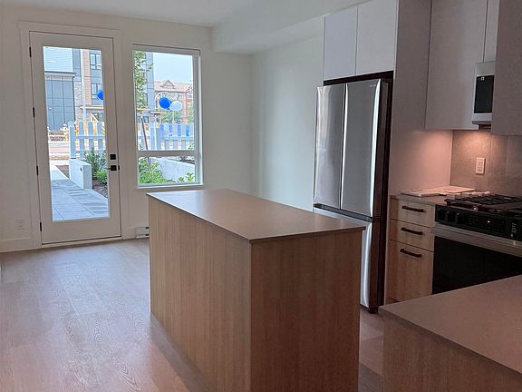 This ground floor residence is filled with natural light, oversized ceilings, grand patio, AC and more! Designed with both comfort and function in mind, it features two bedrooms(1Jnr) and 1 bathroom, providing privacy and ease of living. Expansive windows bring in abundant daylight, while a large ground floor balcony offers ease of access and outdoor retreats. The sleek kitchen showcases modern cabinetry, premium appliances, and a large island that's perfect for entertaining or everyday meals. Situated in the vibrant Willoughby community, you'll enjoy trendy shops, restaurants, and convenient transit access right outside your at Carvolth station.