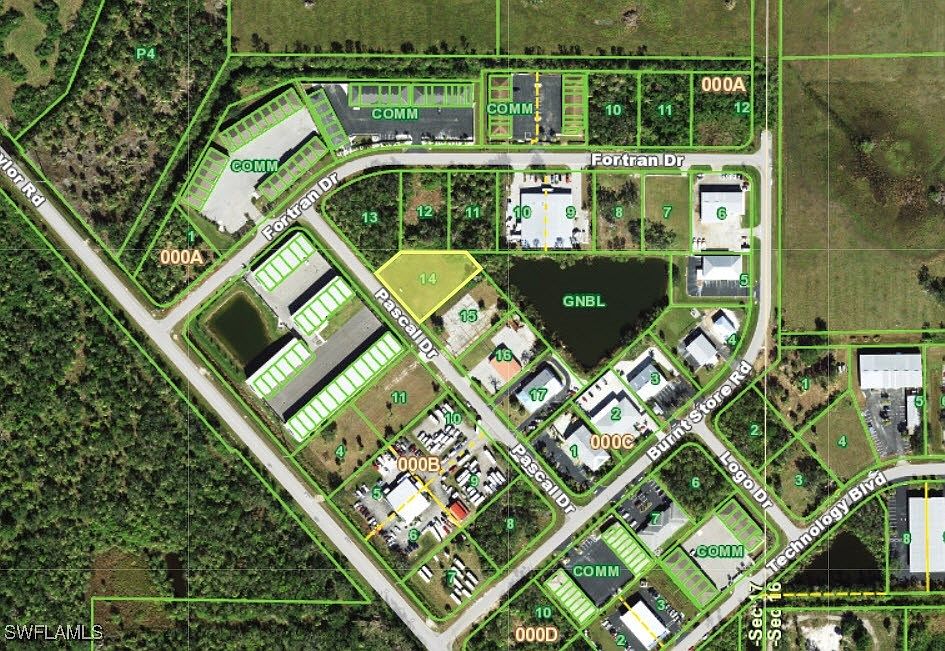 Well located commercial lot in a park developed with toy storage and office/warehouse properties.