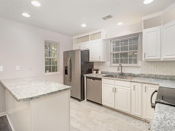 Beautifully bright end unit townhome with primary bedroom on the main level and tons of community amenities! Home is located near I-485 providing you access in and around the Charlotte area and for any nature enthusiasts, it's also near the hiking & lake access at Latta Plantation! Interior has BRAND NEW FLOORING on the main level and opens up into a spacious living room flooded with natural light. Continue in to the dining area open to stunningly remodeled kitchen with bright counters, NEW matching S.S appliances, tons of white cabinets for storage & breakfast bar for additional seating. Primary bedroom located on main level with attached full bath and spacious walk-in closet. Upstairs you'll find 2 additional bedrooms allowing you the flexibility of an office or playroom plus a full hall bath for guests. Private back patio out back great for grilling plus grassy area and tree lining for seclusion. Community amenities include outdoor pool, hot tub, and picnic area PLUS community pond with walking trails. All of this located perfectly between Charlotte & Huntersville, including the highly ranked Birkdale Village, giving you access to endless shops & restaurants. ADDITIONAL UPDATES INCLUDE: 2025 HVAC!