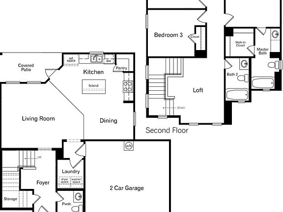 The Swift is a two-story, 1625 sq. ft., 3-bedroom, 2.5-bathroom floor plan. The inviting front porch and entry leads to a foyer which opens to the spacious living area. The living area is located adjacent to the open kitchen and dining area. Enjoy preparing meals and spending time together gathered around the large kitchen island. The kitchen leads to the backyard & relaxing covered patio (per plan) (per plan). There is a storage closet located under the stairs, and the utility room conveniently connects to the garage. Upstairs, you will find a spacious loft/game room area for the entire family to enjoy. The bedroom 1 suite, two secondary bedrooms, and a secondary full bathroom are also located upstairs. You'll enjoy added security in your new home with our Home is Connected features. Using one central hub that talks to all the devices in your home, you can control the lights, thermostat and locks, all from your cellular device. Additional features include sheet vinyl at entry, downstairs living areas and wet areas, stainless steel appliances, granite countertops throughout and much more!