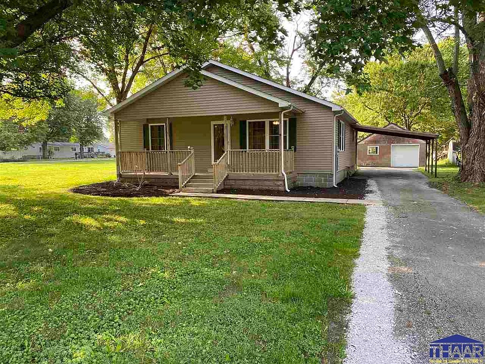 Newly remodeled 2 BR, 2.5 BA home on Terre Haute's east side. This home sits on a flat 1 acre corner lot with plenty of room to expand. Inside is an open concept living area with fresh tile floors in the kitchen and bathrooms, walk-in showers, and plenty of cabinet space in the kitchen. Outside you find the large covered front porch as a perfect place to enjoy your evenings, and the back yard has a large concrete pad with fireplace, a great place to build a pavilion for entertaining.