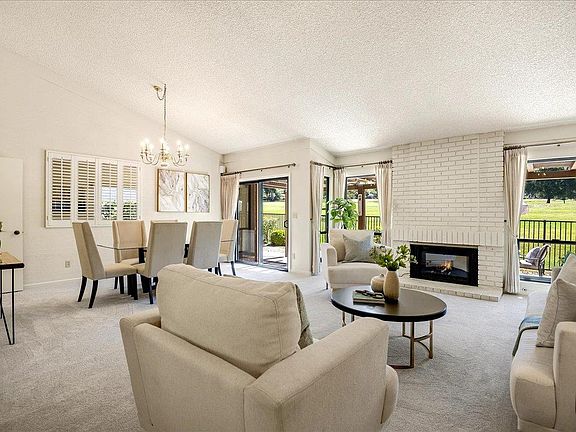 This is your chance to own a Single-Family Home with Significantly Lower HOA Fees than for a Townhouse in the award-winning Villages Senior 55 + Community. Located in a quiet cul de sac street in the Hermosa part of the community, this home has a lot to offer: high ceilings, X2 paned windows, 2022 newer furnace, AC, eat-in kitchen/ family room combo w/recessed lighting, vast formal dining/living room w/ fireplace & deck. Master bed w/ walk-in closet, en-suite bath & deck. 2nd Bed w/ sliding doors to access its own patio w/ awning. 3rd Bed w/ closet can be used as a den/study and/or as a guest bedroom. One part of the garden w/ view of the golf court & other part w/ a patio surrounded by walls ideal for privacy. Extra storage over the garage w/ an attic ladder & huge shed for even more storage. The community features 9 & 18-hole golf courses, tennis, pickleball, 4 pools/spas, a fitness center, an equestrian center, hiking trails, organized activities & more. Easy access to Highway 101.