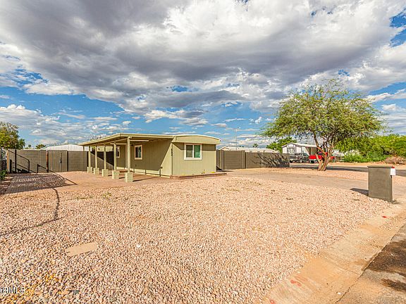 Exceptional opportunity featuring two prime lots on county land in beautiful Mesa, with NO HOA! This property is ideal for contractors or first-time homebuyers seeking a fresh start. Conveniently located with easy access to the 202 freeway. The spacious enclosed with RV gate corner lot provides ample room for expansion or customization. The affixed manufactured home boasts a 2025 remodel, featuring 2 bedrooms and 1 bathroom, along with modern finishes throughout, including new flooring, updated countertops, brand new appliances, fresh paint, a new water heater, and a new roof. The inviting outdoor patio is adorned with stylish brick pavers, making it perfect for entertaining or relaxing. This property offers a unique blend of comfort and potential.