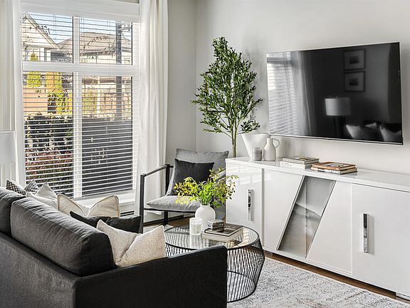 Discover Walnut Park by Quadra Homes - completing Dec 2025! This 1-bedroom ground-floor corner unit home that offers modern comfort in Langley's prime location at 208 St & 83 Ave. Featuring 9' ceilings, oversized windows & upgraded oak-tone laminate floors (no carpet), this unit shines with a sleek kitchen of quartz countertops, S/S appliances & ample storage. Stay cool with portable A/C. enjoy the convenience of a private patio, perfect for pet owners, plus underground parking pre-wire for an EV charger & a storage locker. Spa-like touches include heated bathroom floors, built-in closet organizers & a secure in-suite safe. Low strata fees & pet-friendly. Steps to shops, dining, schools & transit - an unbeatable assignment opportunity in the heart of Langley.