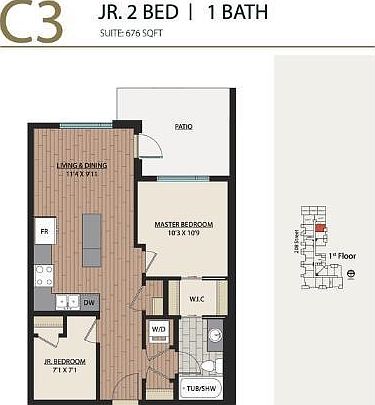 Walnut Park by Quadra Homes! Amazing C3 Junior two-bedroom plan. Ground floor facing courtyard! It is 676 sf of living space. Completing in November 2025. It is an assignment. Langley's Willoughby prime location at 208 St & 83 Ave, close to shopping and the best schools, including RE Mountain with IB program. The unit has a big private patio and is located in the courtyard. Features with a 9-foot ceiling. Included are two portable A/C units, a large storage room with a roll-over door and attached directly to your underground parking with an EV rough-in.