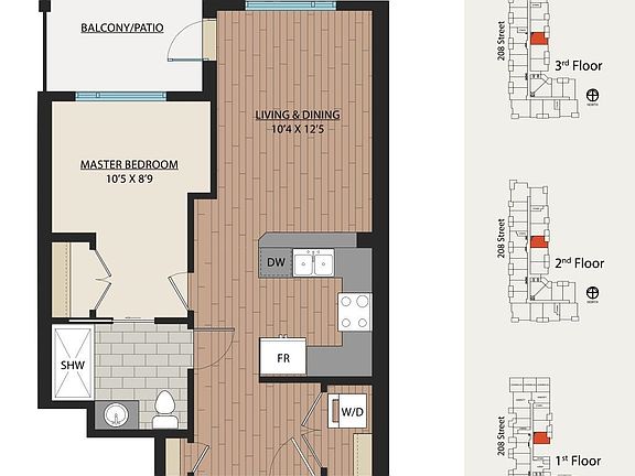 Stainless steel appliancesWhite quartz countertopsWhite shaker cabinetsVinyl plank floorsHeated bathroom floorsBuilt-in closet organizersEast-facing patio
