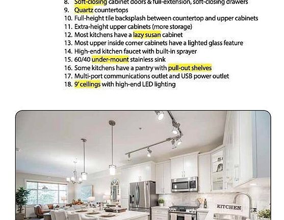 Air conditioningStainless steel appliancesQuartz countertopsWhite shaker cabinetsDurable vinyl plank flooringHeated bathroom floorsBuilt-in closet organizers