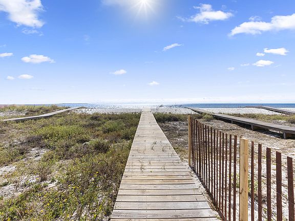 Experience coastal perfection in this stunning 2 bedroom, 2.5 bath Gulf-front townhome, built in 2024, barely lived in, and never rented. Designed for effortless beachfront living, this residence combines modern construction, panoramic Gulf views, and multiple outdoor living spaces just steps from the sand.Highlights include: Private boardwalk directly to the Gulf of MexicoPrivate elevator serving all levelsOne-car garage with convenient storage for beach gear and outside shower.Three levels of Gulf-view spaces: shaded patio on the first level, balcony off the main living area, and private master balcony with unobstructed water vieww.Open-concept main level with designer kitchen, quartz counters, and stainless appliances.