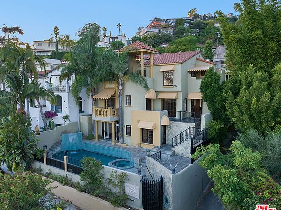 Best fixer on the Sunset Strip, over 5,000 SQFT! Huge upside with cosmetic upgrades and TLC. Steps from the famed Chateau Marmont Hotel, sits this grand Mediterranean villa, that can be updated to be an elegant showstopper. Enjoy front row views of sparkling city lights on your private and secluded two-story exterior patio with impressive pool. European elegance exudes throughout the home with formal living and dining room featuring oversized windows to thoughtfully capture the exquisite views. Stone-clad courtyard to enjoy true al fresco dining - The home boasts a large family room with double doors, a rear guest wing, and a palatial master suite with a private sitting area. Several verandas, a gorgeous pool, spa and exotic waterfall make it the ideal spot for entertaining. Walk steps to the best of Sunset Blvd's restaurants and nightlife. Your private and gated European villa awaits! Priced to sell quickly, reviewing offers as they come in!