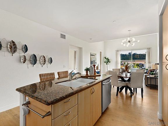 Beautifully maintained top floor condo unit with VIEWS in the highly desirable and rarely available gated community of The Lido. This amazing property boasts a wide-open floor plan with stunning views of the San Diego River from your living room window. Fresh paint, central AC, new ceiling fans, in-unit laundry, and new high-end laminate flooring throughout. Vaulted ceilings and large windows that bask the home in an abundance of natural light. A beautifully appointed kitchen featuring granite countertops, light maple cabinetry, new stainless-steel appliances, modern lighting, and an island with breakfast counter seating that opens to the living area. A spacious primary suite offering its own en-suite bathroom with dual sinks, a relaxing soaking tub, walk-in shower, walk-in closet, and private balcony access. Unsurpassed community amenities including a sparkling pool and spa, fire pit, multi-purpose room, and recreational trails. Parking is a breeze with two assigned spaces in the secure underground garage, a storage space is included too. Conveniently located just minutes away from Snapdragon Stadium, shopping, dining, movie theaters, Interstates 163, 805 and 8, plus so much more. VA and FHA approved complex. Don’t let this opportunity pass you by!