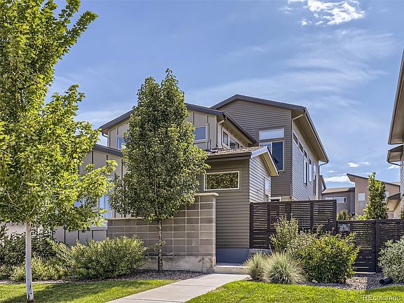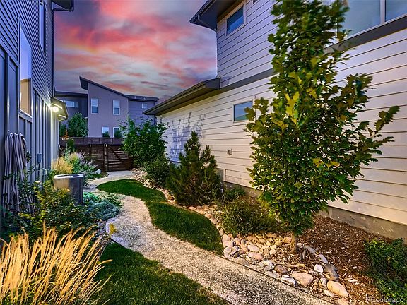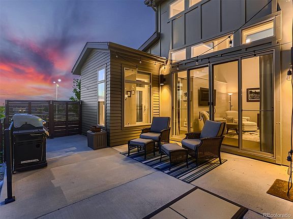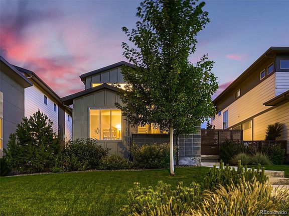 This sophisticated contemporary home is the embodiment of refined design and architecture. It seamlessly blends spacious interiors with two-story cathedral ceilings, ensuring light flows gracefully through wall-to-wall windows. Witness the harmonious union of indoor and outdoor living. Every nook is meticulously crafted with premium finishes and stylish details. Spanning over 3,000 sqft, this home radiates both energy efficiency, Zwave technology, designer touches and attention to detail. The main level is adorned with a lovely family room complemented by a modern gas fireplace, an inviting dining space, and a bright office suite. The deep espresso designer wood floors gleam under refined lighting, accompanied by chic window treatments. The kitchen stands as culinary luxury, equipped with elegant white shaker cabinets, lustrous granite countertops, an expansive island, state-of-the-art stainless appliances including a gas cooktop, double ovens, microwave, a sleek vent hood, and a utility-rich laundry pantry. Ascend to the upper level graced by 10' ceilings. The large Master Suite offers breathtaking MOUNTAIN VIEWS, complemented by a posh en-suite bath with artistic tile designs, oversized European etched glass frameless shower, twin sinks, and ample closet space w/custom fittings. The large finished basement features a recreational area, alongside a guest bedroom with its own bath. Perfect for hosting festive gatherings, imagine summer bbq’s beneath a starry sky, all within the confines of a beautifully manicured fenced PRIVATE garden oasis with extensive patio. New carpet. Newer roof. Attached 2-car garage-haven for organization. Nestled in the heart of community amenities, this Sterling Ranch location boasts prime walkability. Steps from Rec Center, Overlook Clubhouse pool & gym, many parks/trails/playgrounds & Sterling Center-home to the Grist Brewery & Atlas Coffee. Food trucks & Med Center. Easy access to Waterton Canyon, Chatfield Reservoir, C-470 & Mountains.