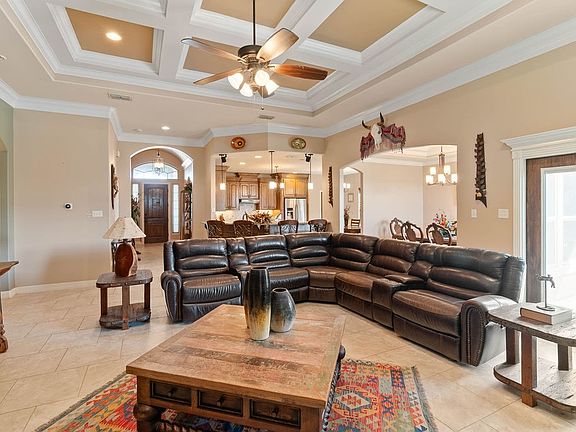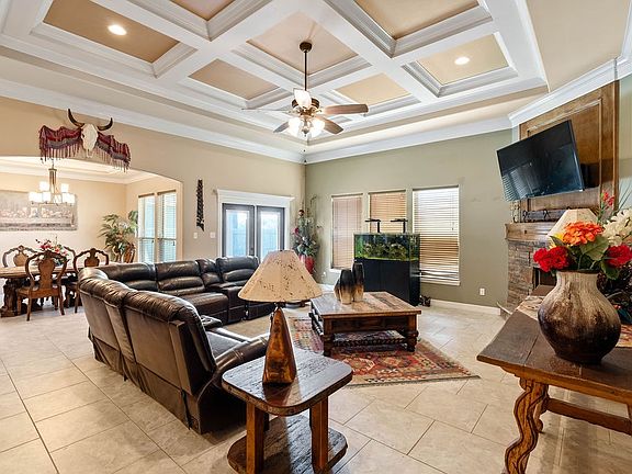 No backyard neighbors! This custom-built home is loaded with upgrades: open floor plan, soaring ceilings, crown molding, tile throughout, and a stunning granite-and-stone fireplace. Chef’s kitchen features a huge island with wine fridge, stainless appliances, custom cabinetry, walk-in pantry, and breakfast bar. Owner’s suite boasts a trayed ceiling, spa-like bath with jetted tub, dual vanities, oversized walk-in shower, and custom closet. Spacious secondary bedrooms, formal dining, and large covered patio complete the package. Quality craftsmanship, unbeatable location—won’t last long!