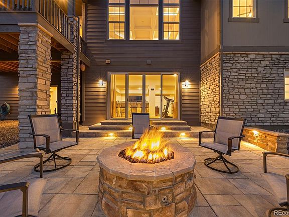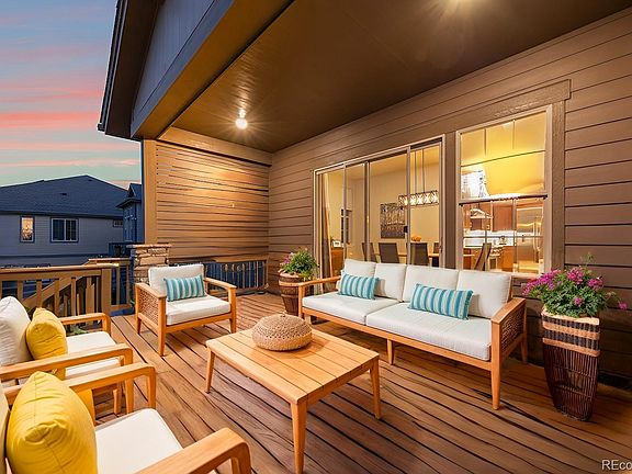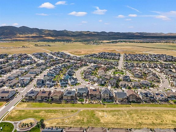 This sophisticated home combines luxury living w/practicality, smart home technology, & beautiful surroundings, making it the truly premium lot of the neighborhood.  The open floor plan offers a vast great room w/tall, coffered ceilings & motorized blinds to shade the abundance of natural light. The high-end kitchen offers quartz countertops w/an oversized island, custom stone sink, extra large refrigerator, double oven, 2 dishwashers, wine chiller, &Monogram appliances. Premium main floor living w/the primary bedroom/bathroom w/slipper tub on the first floor &massive primary walk-in closet nestled conveniently adjacent to the laundry room. Next be welcomed onto the generous, extended, partially covered deck overlooking the expansive open space & breathtaking mountain views as well as the professionally xeriscaped backyard w/a gas fire pit to be enjoyed year round. Rare walkout basement  provides a second living space that can truly feel independent from the main level w/a kitchenette/bar area equipped w/refrigerator, dishwasher, microwave & sink, wine cellar option, hook ups for second laundry room & two massive bedrooms w/walk-in closets & 2 bathrooms. This truly lives like a second home w/a separately keyed entrance for the long-term guest/family.  W/the enormous storage area in the basement & oversized 3 car garage w/epoxy floors & electric car charging station, storage is not an issue for this home.   The smart & green features of this home will amaze w/Seller OWNED solar panels, separate water meter for landscaping which is controlled by a smart Rachio system that monitors weather, & other Smart Home features that can be controlled by cell phone or voice commands. Enjoy being a part of a new community! Coffee shop, brewery, medical care, sports courts, trails, pool, clubhouse & rec center! Schedule your showing today & be sure to ask your broker for all the additional information offered in supplements! Home BOM b/c buyer's commercial truck not allowed by HOA.