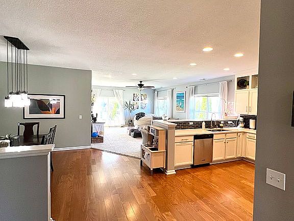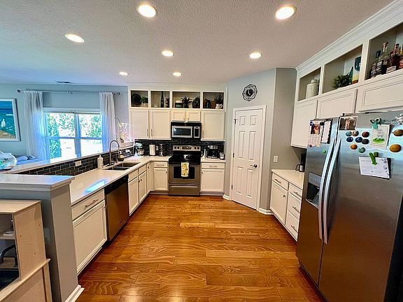 Inside, you’ll find a spacious open floor plan featuring a large living room that flows seamlessly into the dining and kitchen areas—perfect for family gatherings and entertaining. The luxury kitchen has been updated with premium cabinets and modern finishes, while updated flooring runs throughout the home, giving it a fresh, move-in-ready feel.