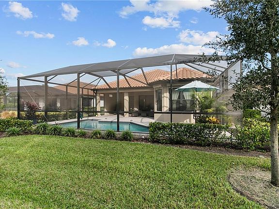 Built December 2021 this pristine home features 3 bedrooms plus a den, 3 baths, and a spacious open layout that feels just like new. Step inside to discover a chef's dream kitchen with double ovens, an oversized island offering ample storage, and a stylish white color palette. The heart of this home is complemented by an expansive living area, making it perfect for entertaining friends and family. The large master suite provides a serene retreat, and the entire home is bathed in natural light. Beyond the modern interiors, your outdoor haven awaits. Lounge by the sparkling large pool, complete with color-changing lighting, and enjoy the extensive covered outdoor space, perfect for al fresco dining or simply unwinding in the fresh air. Electric hurricane shutters add an extra layer of convenience and peace of mind for the back lanai area. This home is situated at the end of a quiet dead-end road, ensuring tranquility and privacy. The paved driveway and epoxy garage floor add a touch of luxury. As part of a natural gas community, you'll appreciate the efficiency and convenience cooking with gas in your new home.