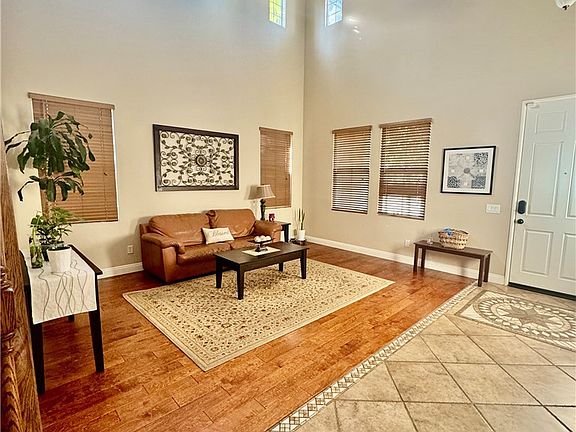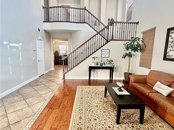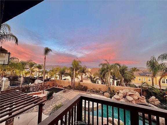 Welcome to the beautiful Orangecrest Community of EXECUTIVE HOMES in one of the most attractive neighborhoods in Riverside, CA. This stunning resort-style home boasts the largest floorplan in the neighborhood offering 5 bedrooms and 3 full bathrooms, 4 of the bedrooms and 2 bathrooms are upstairs and 1 Bedroom is in the main floor with 1 full bathroom. With 3,382 square feet of living space and a three-car garage, this home features upgraded wood and tile flooring, soaring ceilings, crown molding, and dual-pane windows. The spacious and open family and formal living rooms feature a cozy fireplace and built-in media center. The kitchen, dining area, and family room seamlessly blend in an open floor concept. The kitchen, with its beautiful granite countertops, built-in hutch, and walk-in pantry, is perfect for family gatherings and creating lasting memories. The washer/dryer room is upstairs and has a sink with a faucet and cabinets to use as storage. Spacious hallway linen closet with double doors. The master suite features a spacious bathroom with a separate bathtub and shower, his and her sinks, and a large walk-in closet. A private balcony offers breathtaking views of the mountains, city lights, and sunsets. The additional four bedrooms provide ample space for family and guests. The second balcony is in one of the bedrooms with a view of the front yard and neighborhood. The backyard presents endless possibilities for creating your dream resort-style oasis with a pool, spa, and waterfall features. Fruit trees and a garden area complete this incredible outdoor space. This exceptional home offers both relaxation and entertainment, perfect for sharing with family and friends.