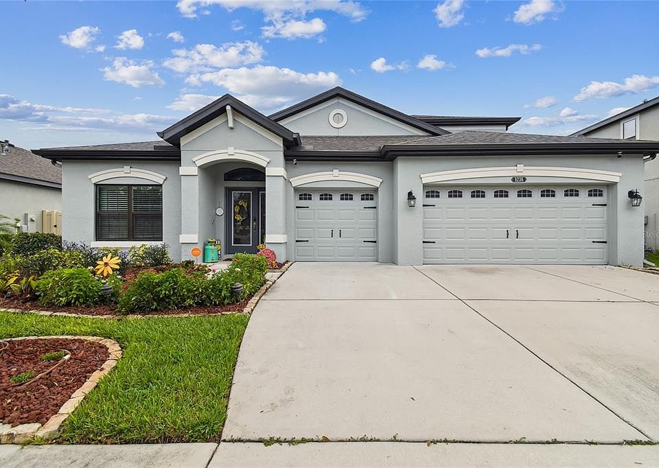 MOVE IN READY! CHECK OUT FLORIDA'S LIVING AT IT'S BEST WITH THIS AMAZING YARD AND TIKI BAR set up in this MI HOMES CORINNA II floorplan with BONUS, 4 bedrooms, 4 bath home, HUGE BONUS ROOM and 3 car garage boasts over 3100 SQ.FT. of perfectly appointed living space. Entering the home through the upgraded GLASS FRONT DOOR into the welcoming FOYER you will notice upgraded WOOD LOOK TILE,TALL CEILINGS & ARCHED ENTRY WAYS. To the left of the foyer in through the archway is a full bath, with granite counter and two bedrooms on either side. Right of the foyer is a spacious laundry room, washer/dryer, built in cabinets & under stair storage. Past the staircase and to the right is the OVERSIZED fourth bedroom & full Bath with spacious GRANITE COUNTERTOP & CUSTOM MIRRORS perfect for an in-law suite. Entering the main living space, is an open concept living with dining room, grand room kitchen & café. The Grand room has surround sound speakers & a decorative accent wall. Kitchen features 42" Shaker Cabinets with 12" Uppers, Quartz Countertops, Decorative backsplash, BUILT IN WINE FRIDGE with 144 bottle dual zone and two additional refrigerator drawers, custom BUTCHER BLOCK island, extended cabinets into the cafe area also featuring ADDITIONAL CABINETS & BUTCHER BLOCK countertops. Kitchen boasts STAINLESS STEEL APPLIANCES, BUILT IN MICROWAVE, NEW GAS DOUBLE OVEN RANGE with WIFI, STAINLESS STEEL HOOD VENT, DISHWASHER AND FRIDGE also have WIFI. Custom PENDANT LIGHT FIXTURES over the spacious island, upgraded KITCHEN FAUCET & OVER SIZED FARMHOUSE SINK. Off the café is the large 8 FT. wide slider to the EXTENDED SCREENED LANAI featuring outdoor ceiling fans, & TIKI BAR perfect for entertaining. Backyard is paved perfectly for a great entertaining space while visiting with friends and family, playing a game of cornhole and visiting around the firepit. Freshly painted OWNERS SUITE, 2 walk in closets, CROWN MOLDING, DOUBLE DOOR ENTRY into the Owners Bathroom featuring double sinks, GRANITE COUNTERTOPS a TILED SURROUND for GARDEN TUB with decorative LISTELLO ACCENT TILE and AN OVERSIZED TILED WALK IN SHOWER with DECORATIVE UPGRADED LISTELLO TILE. Back to the foyer, UPGRADED WROUGHT IRON SPINDLES lead you up to the enormous Bonus room, perfect for additional living and entertaining space. The upper level also features a 4th full bath, with GRANITE COUNTERTOPS & TILED SHOWER. This perfect home is awaiting you and your family to make it your own and create a lifetime of new memories. Additional features include, CUSTOM LIGHT FIXTURES, CROWN MOLDING, ACCENT WALLS, RECLAIMED WATER & high-efficiency heating & air conditioning system, UPPER LEVEL PRE-PLUMB FOR WETBAR, WATER SOFTENER, AC UNIT IN GARAGE is a SPLIT AIR UNIT, WIFI GARAGE DOORS, WHOLE HOME GENERATOR & WASHER, DRYER. Home is perfectly situated across from the open field, one of many playgrounds and a community dog park. Spend time at the community’s impressive resort-style pool and splash park. Swim laps in the temperature-controlled LAP POOL. Play a pick-up game with friends and neighbors at one of the many sport courts including basketball, tennis and volleyball. Stay active by frequenting the fitness center or walking outdoors along the nature trails. you’ll love gathering with new friends and neighbors for community events at the clubhouse and outdoor amphitheater. Enjoy all the amenities this beautiful GOLF CART FRIENDLY community has to offer. Call to schedule your personal showing today.