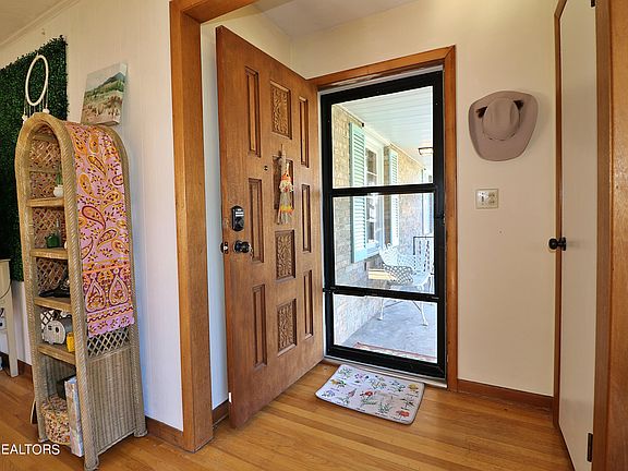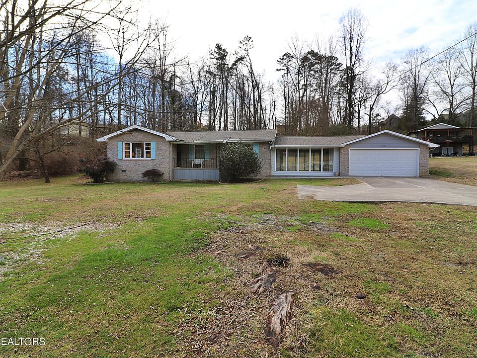 Great opportunity to own 1.7 acres and a beautiful brick rancher in the Powell community! The home has fresh paint, new water heater, new hardware, fixtures, doorknobs, toilet and sink in half bath. It also has new flooring in the kitchen, dining room ,hallway, both bathrooms, and 3rd bedroom. The exterior features a large flat front yard, covered front porch, concrete drive and garage, screened back porch, 2 story storage shed, and road frontage on Ponderosa Dr in the back.