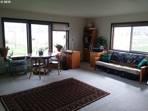Private, yet close to town, 5 acres and very nice 3 bedroom 2 bath ranch home with large attached carport. Living Room & Family Room. Private south facing large deck with mountain/valley views. Separate roomy multi-use garage/shop or barn.Live year around water for irrigating the yard and pasture ground.
