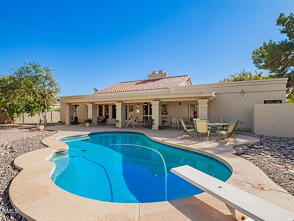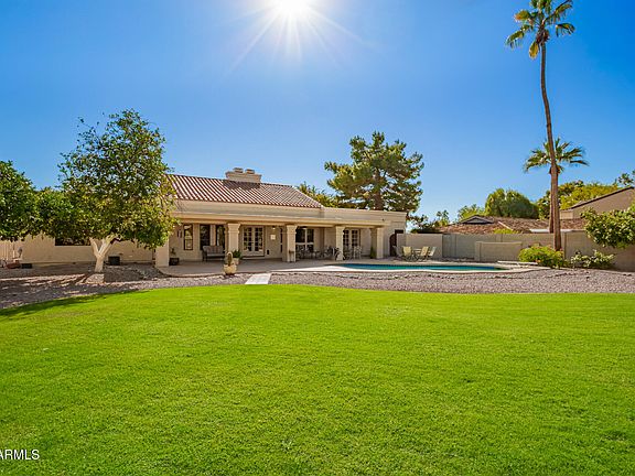 Sitting on a resort-like .4-acre lot in the popular & flourishing community of McCormick Ranch, this special residence welcomes you! The four bedrooms & three bathrooms inside, with rich wood-tones throughout, certainly offer you the space you need to move in and settle down. The generously-sized diving pool, extensive grass/play area & sprawling covered patio suggest the opportunity for fun family & friend gatherings. Just as special, this retreat propositions you to envision the possibilities of a creative transformation to an even more special sanctuary. Reimagine the yard to include a guest house, sport court & gazebo with a BBQ center... visualize a home renewal to create a cavernous great room, chef's kitchen and game center. Your prospects are limitless.. come explore your future!