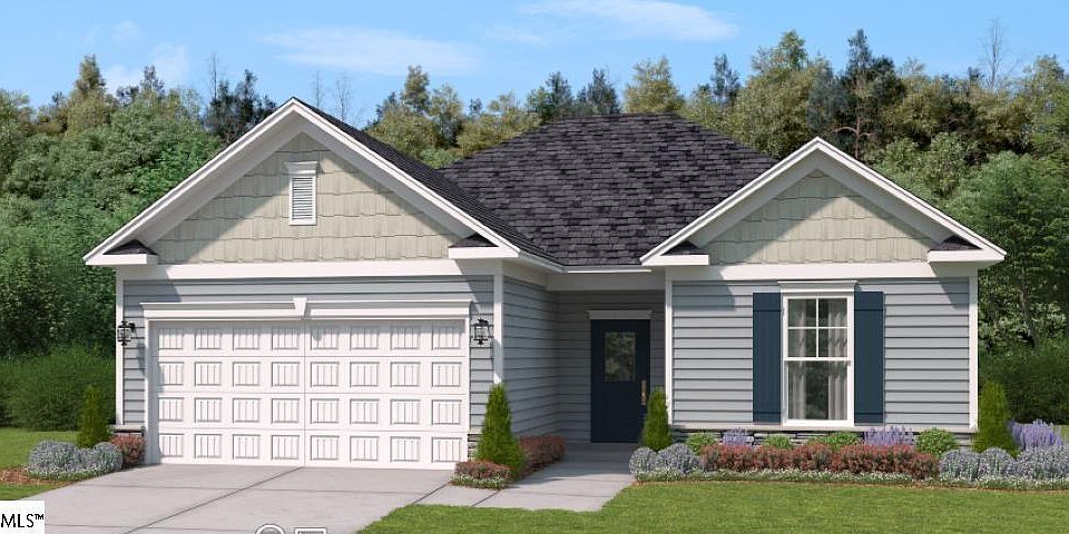 One level living! This sweet SANTEE plan will surprise you with its open floorplan and great flow, perfect for entertaining!! The kitchen is BEAUTIFUL with stainless appliances, white cabinetry and quartz countertops and spills into the breakfast area and spacious family room with soaring ceilings. The primary suite, with walk-in closet, has its own private bathroom with double vanities and a walk-in shower. The other 2 bedrooms - ready for guests - are located on the opposite side of the home and share a full hall bathroom. Enjoy the ease of main level living in a highly desirable area. Oakton is one of Greer’s newest communities, convenient to shopping and dining options, close to Downtown Greer and a short distance to Downtown Greenville. The trouble-free yard means more time to enjoy the property, as LAWN CARE is INCLUDED in the HOA. All this plus a two-car garage, tankless hot water heater and more! Come quick and make this home your own!