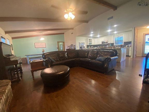 Country living at it's finest!! Close to 2 acres West of Iowa Park with beautiful home of 2312 sq. feet, 3 bedrooms, 2 1/2 baths, office or sitting room, glass enclosed porch, popular hardwood appearing laminate flooring, granite countertop in kitchen with huge island. The shop is every man's dream with 1700 Sq. feet a hydraulic lift and extra storage. Animal pens and area for horses etc. to graze and roam free. Home is in the Iowa Park School District. Call to see this home today!!