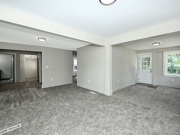New plumbing, Electrical, New Roof, New bathroom fixtures, New drywall, All New Flooring, Waterproofed, low maintenance Vinyl siding, Nicely remodled and ready to move in with home office or computer room. Large yard for your kids, garden or fire pit and a great school district. Large spacious 2 car drive through garage, with extra half car area for workshop.