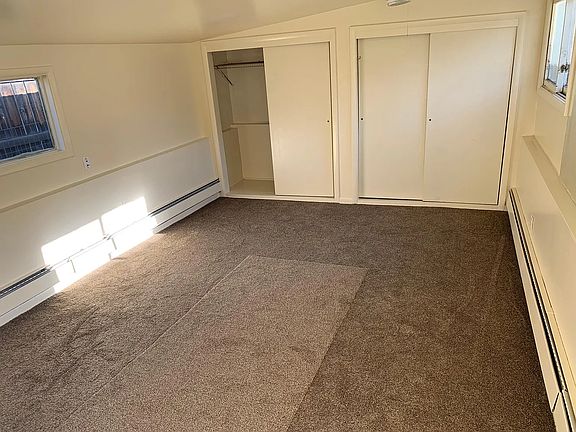 4 bedroom 2 bath single level house with a small shed behind the house. House has floorboard heating, carpeted bedrooms, and an upgraded gas stove. Would make a great home for a small family with kids.