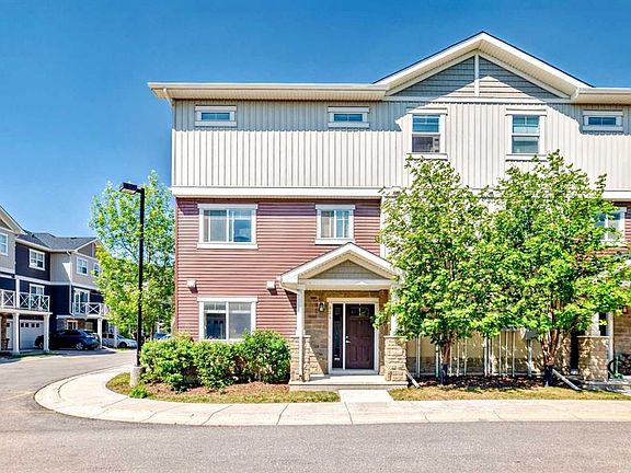 ***Spacious End Unit Townhouse with 1,658 Sq. Ft. of Modern Design*** This end-unit townhome offers 1,658 sq. ft. of thoughtfully designed living space, combining comfort, style, and functionality. Highlights include: Attached garage with ample storage Main floor den, ideal for a 4th bedroom, bonus room, or home office Open-concept living room flowing into a modern kitchen with stainless steel appliances and generous cabinetry Private balcony that fills the space with natural light Convenient laundry area near a 2-piece bathroom with built-in storage solutions Primary bedroom with vaulted ceiling, walk-in closet, and 3-piece ensuite Two additional bedrooms providing flexibility for family, guests, or work-from-home needs This family-friendly complex is ideally located near top-rated schools, playgrounds, restaurants, and shopping, with Calgary Airport only 10 minutes away. Quick access to Stoney Trail ensures easy commuting across the city. This home delivers a modern lifestyle along with excellent investment potential. Schedule your showing today.