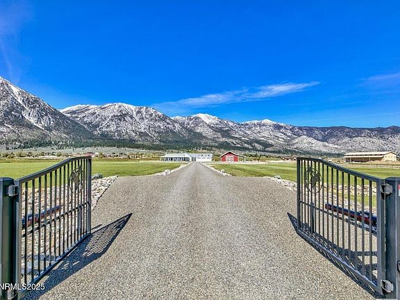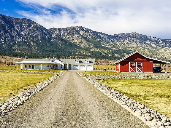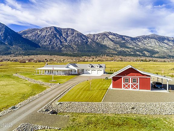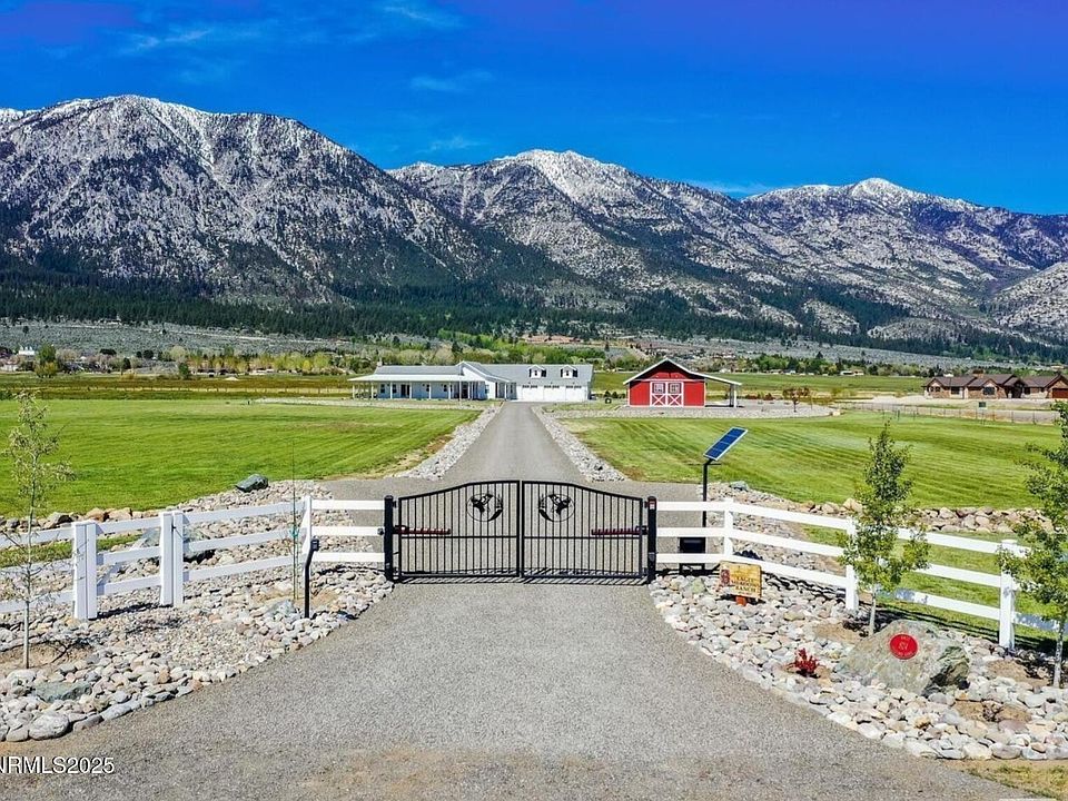 Discover a true gem! This property showcases pride of ownership, evident in every detail. Meticulously maintained, it feels almost like a model home. Enter through the electric gate to breathtaking views of the Eastern Sierra, set on a sprawling 20 acres with stunning vistas all around. Experience rural living at its finest in this exquisite residence featuring four spacious bedrooms, three and a half luxurious bathrooms, and an office or den adorned with custom antique sliding barn doors. The chef's kitchen is a dream come true, featuring custom cabinetry, a commercial-grade range and hood, and Energy Star appliances—perfect for memorable family gatherings. Solid-core doors enhance the overall quality. The laundry room even includes a pet wash station! The three-car garage boasts epoxy flooring for added durability. Step outside to an expansive deck complete with a built-in barbecue, fire pit, and fireplace, with wiring already in place for outdoor heaters—ideal for year-round entertaining. This land truly has it all! Zoned as an agricultural parcel, it comes complete with water rights for irrigating pastures, two serene seasonal ponds, and a year-round creek. It's fully fenced and cross-fenced, with an underground propane tank, private well, and oversized septic system. Beautiful landscaping, enhanced by an automatic sprinkler system, adds to the allure. The barn-style workshop is both insulated and drywalled, as well as the prominent shed adjacent to the well-built chicken coop. Enjoy superior soundproofing throughout the home, along with a whole-home water filtration system and a circulating hot water system. A backup generator ensures peace of mind, while the insulated garage and doors add an extra layer of comfort and convenience. Whether you have horses or toys, there's ample space to expand or customize further. Just minutes from Lake Tahoe, as well as hiking trails and world-class ski resorts at Heavenly, Kirkwood, and Palisades. Conveniently located about 45 minutes from Reno Tahoe International Airport and just 20 minutes from Carson City. Don't miss out on this incredible opportunity!