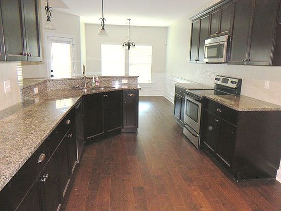 Superb floor plan offering 3 bedrooms on main level (including owner suite) and one bedroom and full bathroom upstairs. New wide plank hardwood floors in foyer, kitchen, dining area, great room and owner bedroom. Owner bath with separate shower and garden tub. Owner bedroom with tray ceiling. Kitchen with ss appliances (smooth cook top), granite counter tops and pantry! Great room with vaulted ceiling. New carpet throughout and freshly painted. Inviting front and back porches. Flat yard with privacy fence! Great curb appeal! Neighborhood amenities include: pool, clubhouse, sidewalk and within walking distance of elementary school. Built by Blue Ribbon Builders.