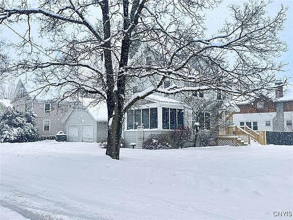 Enjoy the comfort of this spacious 2-story home on a fully fenced-in DOUBLE LOT! Formal entryway, Dining Room, Living Room, and a cozy Kitchen with glistening granite countertops, as well as a butcher block next to the stove. Plenty of cabinet space, updated appliances and a breakfast bar area for gathering or entertaining! A BRAND NEW covered front porch was built in 2025. Find more space on the gorgeous screened-in 3-season room with beautiful natural light. Hardwoods throughout up and downstairs and on the stairs. Enjoy plenty of natural light in all rooms. Upstairs, find three bedrooms, bathroom, and a BONUS room for tv or office, or a little coffee spot. PLUS added storage space in the attic. In the bone-dry basement, entertain at the bar, equipped with a built-in refrigerator and fun lighting. The corner lot boasts a 2-stall garage with opener, and a spacious fenced-in back yard for privacy. Laundry is in basement. This property is ready for you to move in and enjoy. It’s conveniently located right off Griffiss Business and Technology Park.