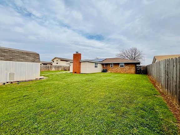 Move in ready brick home with 3 bedrooms, 1.5 bathrooms, 2 Living areas, fireplace, and a lovely kitchen with granite countertops and stainless steel appliances, It includes a nice big laundry room with lots of storage and attached 2 car garage. Two storage sheds and a big fenced back yard. -- And you can throw away that electric bill because this house has new solar panels!
