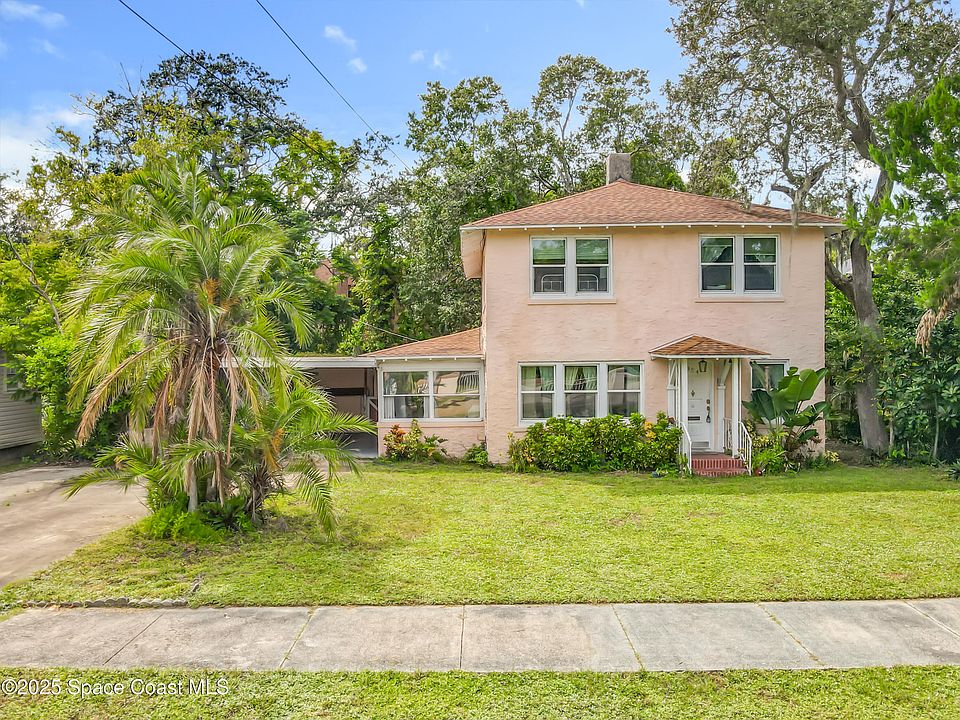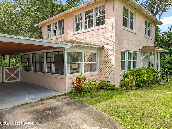 Discover timeless character in this 1945 concrete block residence, where original hardwood floors set a warm and inviting tone. The main level offers a comfortable living space that opens to a delightful kitchen with a sunny breakfast nook and an adjacent dining room overlooking the peaceful backyard. A full bathroom and a light-filled sunroom complete the downstairs, blending practicality with charm. Upstairs, you'll find three bedrooms and another full bathroom. Two of the bedrooms enjoy charming glimpses of the river, while hurricane-rated impact windows protect the eastern side of the home. The upstairs bathroom provides a spa-like retreat, offering a relaxing escape at the end of the day. Outside, the private backyard features an orange tree, towering timber bamboo, and a spacious shed with laundry facilities. Energy-efficient features add comfort while preserving the home's charming character. Don't miss the opportunity to make this classic home your own!