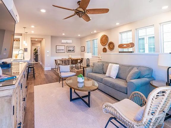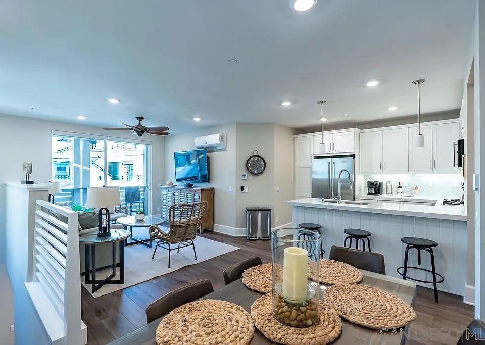 Welcome to this immaculate 3 bedroom, 2 bath beach house, just a brisk walk to both Mission Bay and Mission Beach! Peek water views from Balcony! The space This freshly built, crisp and clean residence is fully-equipped with everything you need for the ideal beach vacation. Beautiful Mission Bay is a mere short steps from the front door and famous Mission Beach is just a short stroll until your feet hit the sand. The three bedrooms are perfectly situated with the primary being an en-suite complete with king bed and bathroom with gleaming shower, along with two additional guest bedrooms each with their own comfy queen beds. All rooms have flat screen TV's for your enjoyment. There is a combo shower/tub guest bathroom as well. The sunny living room flows into the lavish kitchen and dining for the ideal gathering space - relax, cook, and take in the coastal breeze. Delight in a cup of coffee in the sleek, bright kitchen at the breakfast bar with three barstool seats, and savor a casual lunch or sundown dinner at the dining table which accommodates six people. The kitchen features polished countertops and stainless steel appliances to create all your favorite dishes, but you can also grill outside should you desire. Sliding doors open to the balcony off of the living room which boasts a bay view and covered lounge space, plus there is a spacious entry patio complete with table/chairs, and firepit for watching sunsets and open air dining. You'll also enjoy the the BBQ and outdoor shower! RATES ARE SUBJECT TO LENGTH OF TERM AND SEASON. Welcome to this immaculate 3 bedroom, 2 bath beach house, just a brisk walk to both Mission Bay and Mission Beach! Peek water views from Balcony! The space This freshly built, crisp and clean residence is fully-equipped with everything you need for the ideal beach vacation. Beautiful Mission Bay is a mere short steps from the front door and famous Mission Beach is just a short stroll until your feet hit the sand. The three bedrooms are perfectly situated with the primary being an en-suite complete with king bed and bathroom with gleaming shower, along with two additional guest bedrooms each with their own comfy queen beds. All rooms have flat screen TV's for your enjoyment. There is a combo shower/tub guest bathroom as well. The sunny living room flows into the lavish kitchen and dining for the ideal gathering space - relax, cook, and take in the coastal breeze. Delight in a cup of coffee in the sleek, bright kitchen at the breakfast bar with three barstool seats, and savor a casual lunch or sundown dinner at the dining table which accommodates six people. The kitchen features polished countertops and stainless steel appliances to create all your favorite dishes, but you can also grill outside should you desire. Sliding doors open to the balcony off of the living room which boasts a bay view and covered lounge space, plus there is a spacious entry patio complete with table/chairs, and firepit for watching sunsets and open air dining. You'll also enjoy the the BBQ and outdoor shower! For added satisfaction, there are air conditioning systems throughout the home, in-unit washer and dryer, sleeper sofa couch, and one compact parking space in the garage. This home is where guests can unwind and enjoy the beach lifestyle in a relaxed, yet splendid atmosphere! Sleeping Accommodations (Maximum 6 guests): Bedroom 1 - King bed Bedroom 2 - Queen bed Bedroom 3 - Queen bed Sleeper sofa Guest access You get to enjoy the entire home during your stay. Other things to note - Pack n' play and high chair available for rent - $25 each plus tax - Puzzles and board games provided. - This property has two levels so there are stairs. The main level is entrance, laundry and garage. The second level includes the living/dining spaces and all bedrooms/baths. - There is one garage parking space for a compact vehicle. Large cars will not fit in the space. There is street parking otherwise. - You must be 21 years or older to rent this property. - No pets allowed. - As part of our standard verification process, we kindly request that the guest signs an additional agreement and verifies ID. Your comfort and security are important to us. Registration Details STR-04243L, 637893