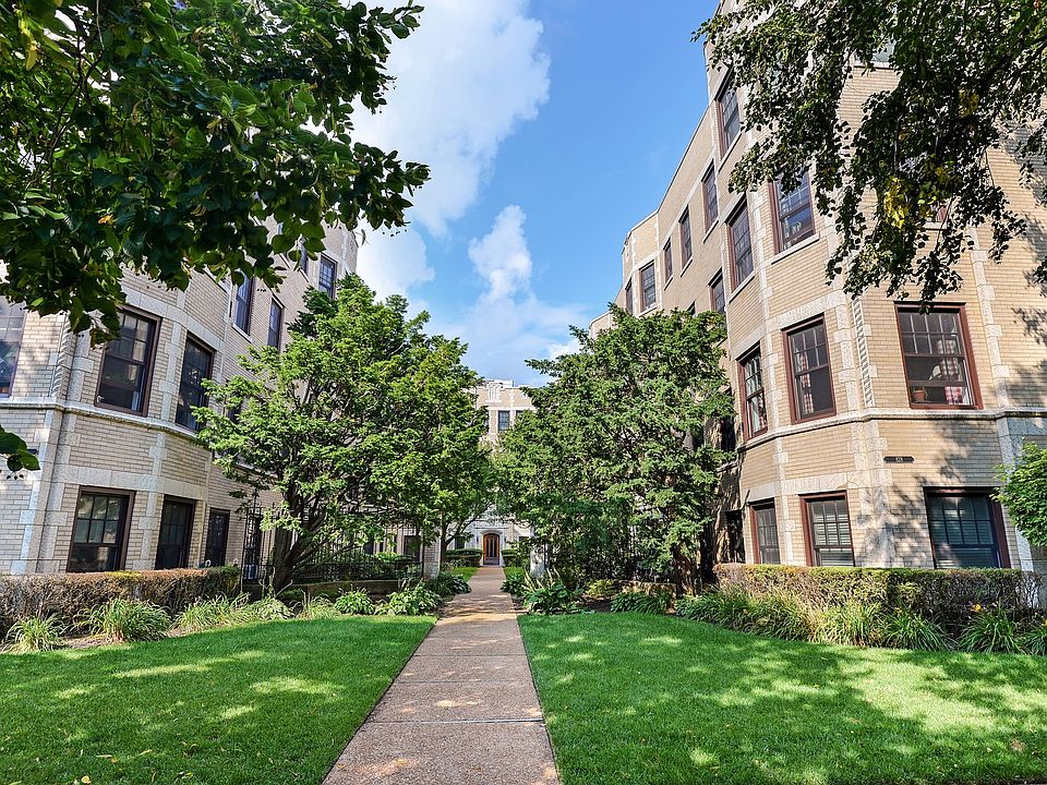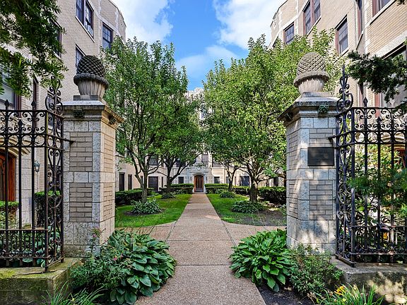 Deeded garage parking included in price! Woodburning fireplace in the living room! Charming second floor vintage condo in excellent move-in condition. Nicely updated kitchen and bathroom, hardwood floors throughout, all windows have been replaced, freshly painted. Stoneleigh castle is one of Evanston's most beautiful courtyard buildings. Click on 'additional information' for floor plan. 100% all owner occupied, rentals are not allowed. In-unit laundry allowed with board approval. Please see the 'Association Information' and the floor plan under the 'additional information' tab.