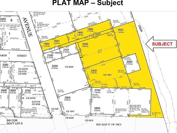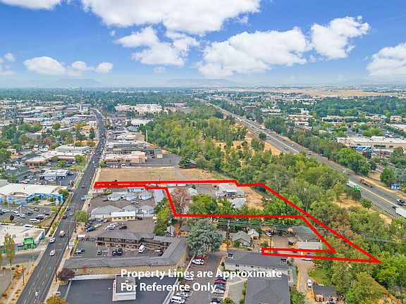 Zoned C-C (Community Commercial), this property offers a wide range of permitted uses, including multi-family residential development (MFR-30). The site is currently improved with a mixed-use facility consisting of the following structures: A 3,464 sq. ft. light industrial shop; 3 single-family residences; 2 single-car detached garages; One four-car detached garage; One attached four-car tandem garage. Improvements were constructed between 1948 and 1998 and are of wood-frame construction. Site enhancements include asphalt and concrete paving, perimeter fencing, and multiple storage sheds. The property spans six tax lots, comprising a total of 2.90 acres (126,324 sq. ft.). Of this, the net developable area is 1.98 acres (86,314 sq. ft.). Tax Parcels included are: 10703644, 10328558, 10328614,10328517, 10328541, 10328566. Site addresses: 824-902 N Riverside Ave., Medford.