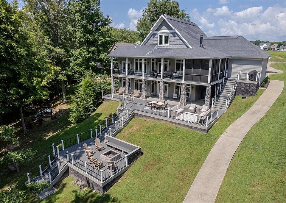 Don't wait to schedule your appointment to see this beautiful home! The sellers have just made a HUGE PRICE IMPROVEMENT! This craftsman style waterfront home on Rough River is gorgeous! • 3 bedrooms, 3.5 baths • Primary Bedroom with fireplace • 2 car attached garage • 4 fireplaces • 100-year-old reclaimed wood floors on the main floor • Shiplap on some of the walls • Custom Amish cabinetry throughout the house • Farmhouse style sink in the kitchen • Prairie grill windows on the lake side of the home that give you an awesome view of Rough River Lake • Reading room on the main floor, just off the kitchen • The primary bath includes an awesome free-standing soaking tub and an exquisitely tiled shower • A full bar • Pool table • A bunk room with 4 built in bunks • A theatre room with 14 theatre seats and a huge screen • Screened in deck with fireplace • Open deck • Patio • Concrete cart path and steps for ease in getting to the dock • 2 x 6 walls with blown in insulation for better efficiency • Tiered composite decking complete with a firepit Call today to make an appointment. You will really appreciate the quality of this home. Dock to transfer with COE approval.