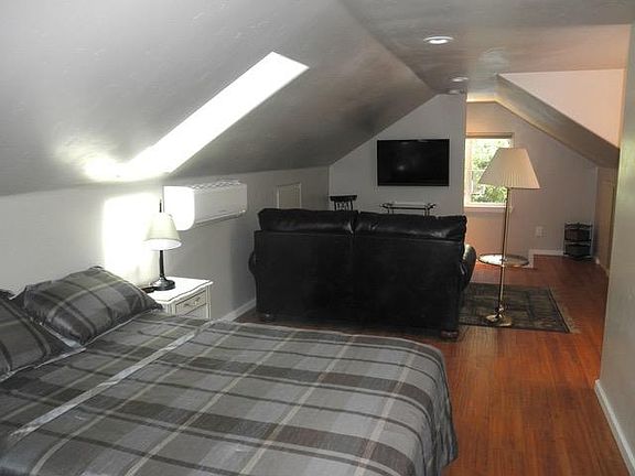 Fully furnished open plan layout w/ hardwood floors, dual-pane windows, skylights