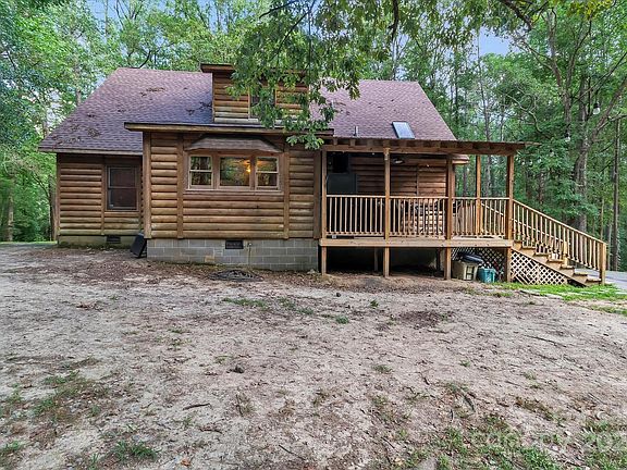 Nestled on a serene 2.5-acre wooded lot, this charming cabin offers rustic charm and modern convenience. Just minutes from town, it provides a tranquil escape with all the amenities you need for a comfortable lifestyle. Enjoy beautiful views from the front porch and back deck, where you can relax and take in the natural beauty. The cabin is bordered by a gentle creek, adding to the serene atmosphere. The living room features a cozy wood-burning fireplace, perfect for chilly evenings. The kitchen boasts stainless steel appliances, ample counter space, and a spacious island. The primary bedroom offers an ensuite bathroom with a luxurious clawfoot tub. Additionally, the property includes a storage building wired with electricity and a zipline for fun and adventure! Whether you're looking for a peaceful retreat or a place to entertain, this property offers it all. Don't miss the opportunity to make this cabin your own!