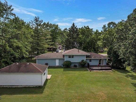 1 acre lot , Lake Michigan water! 4 Bedroom tri-level has Large kitchen with oak cabinets, 2 baths, stone fireplace, large deck on a large acre lot 5 car garage includes 2 garages 1, 2 car attached and 2, 3 car detached garage Perfect for the car buff or someone that has hobbies and needs a work area Newer vinyl siding Deck has been recently stained all new carpet throughout 4th bedroom has separate entrance fresh interior paint 4 garage remotes Newer deck 2019 Vinyl siding 2019