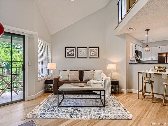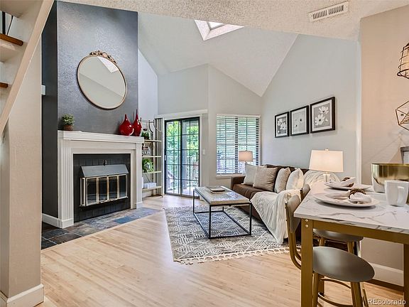 Luxury Penthouse Condo with Bonus Loft near Belmar! Welcome to your dream home! Step into this beautifully renovated vaulted penthouse unit that will take your breath away. The sight of stunning slate tile entry way and refinished real bamboo floors throughout exudes elegance and warmth. The living room boasts vaulted ceilings, a cozy fireplace and mesmerizing bamboo floors, offering comfort and style for winter nights. The kitchen is modern and chic, with white cabinetry and black stainless-steel appliance with a brand new refrigerator and stove/oven/microwave/dishwasher (all just 3 years old). The spacious primary bedroom features double closets with built-in organizers, keeping your belongings neat & tidy. The remodeled dual-door shared bathroom offers a lovely jetted tub for a spa-like experience. This condo is truly unique with its non-conforming loft space, perfect for an extra bedroom, home office, workout area, or crafting haven. Plus, enjoy the central air conditioning for cool comfort during the hottest summer days. You'll have the added convenience of a full-sized washer & dryer in a dedicated laundry closet (no more stackable units like other condos offer!). Upgraded solid-core paneled doors & 6-inch baseboards add a touch of sophistication. Large windows and skylights fill the home with natural light, offering picturesque views of the scenic mature trees surrounding the property. Parking is a breeze with your own reserved space & a guest pass. The cozy street location is just a short stroll away from BELMAR, giving you access to shops, eateries, pubs, gyms, movie theaters, ice rink, cultural center & more! The homeowner's association covers maintenance, insurance of the grounds & structure, sewer, snow removal, trash, & water. Relax & enjoy all that the Belmar area has to offer without worries. Explore Lakewood's Belmar Park & Museum just steps from your doorstep and with easy access to downtown and the mountains! Don't miss this fantastic opportunity!